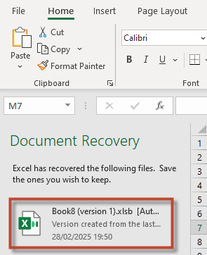 Use “Recover Document” When Restarting Excel