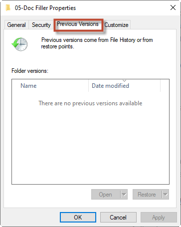 - Click Restore previous versions.
